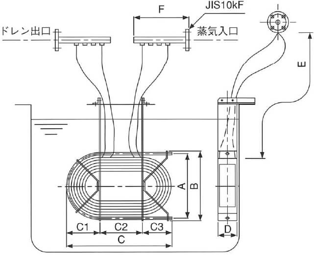 伝熱管に耐蝕性のあるフッ素樹脂(PFA)を使用した槽内浸漬式の耐蝕熱交換器です。